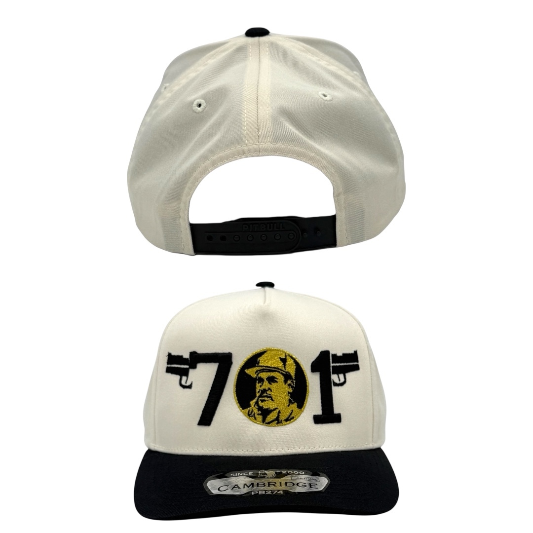 CUSTOM HEADWEAR MADE BY HATSTOP Add to Cart El Chapo 701 Cambridge Cream/Black A-Frame Adjustable Snapback Hat MSRP: Was: Now: $35.00 BRAND: Pitbull Cambridge A-Frame SnapbackCOLOR OF HAT: Cream Crown And Black BillTYPE OF HAT: Snapba…