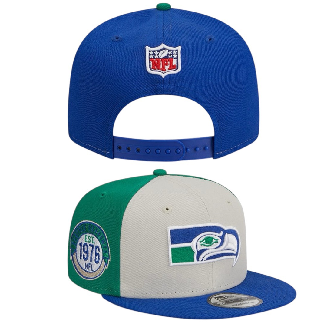NEW ERA Add to Cart Seattle Seahawks New Era Navy/Black 2025 NFL Draft 9FIFTY A-Frame Adjustable Snapback Hat MSRP: Was: Now: $41.99 BRAND: New Era 9FIFTY A-Frame Snapback COLOR OF HAT: Black Crown And Navy BillTYPE OF HAT: SnapbackS…