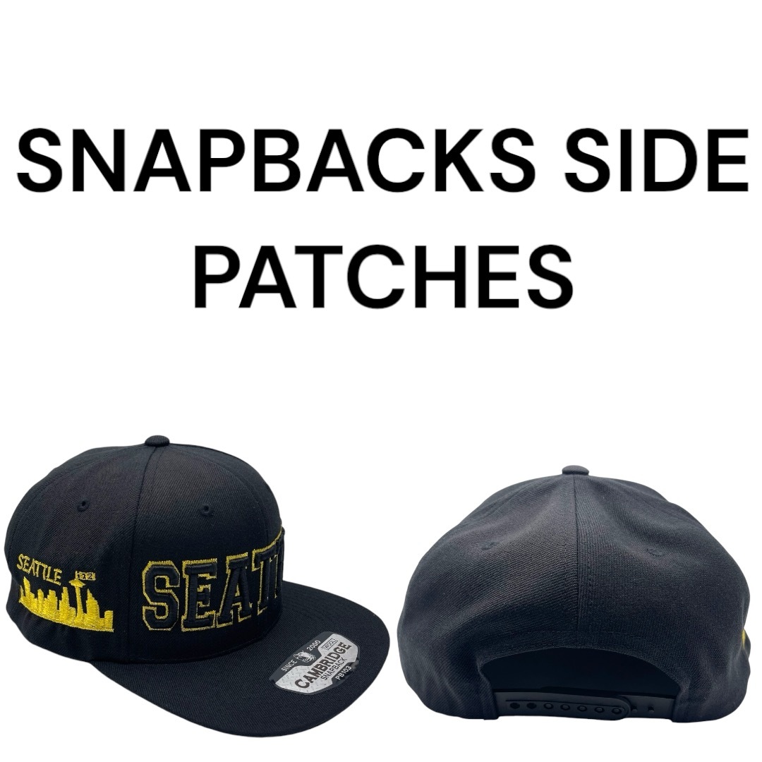 CUSTOM HEADWEAR MADE BY HATSTOP Add to Cart Seattle The City All Black/Gold With Skyline Patch On Side Adjustable Snapback Hat MSRP: Was: Now: $40.00 BRAND: Pitbull Cambridge High Crown Snapback COLOR OF HAT: Black Crown And Bill TYPE OF HAT: Snapbac…